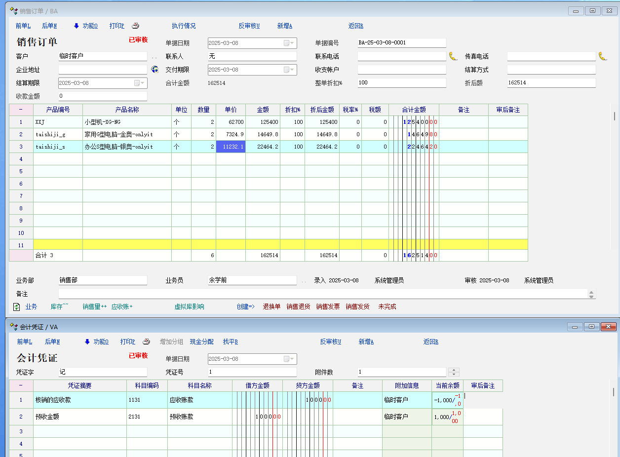 测试: 1. 如果单据对往来有影响, 比如做了销售订单 + 收款单. 这时审后更新, 更改销售订单的数量或金额, 会提示不能更新. 这个逻辑是对的. 2. 如果销售订单保存, 审核. 会计根据销售订单引入业务凭证, 做了会计凭证了. 这时候销售订单审后调整, 是可以修改数量金额的. 这时候, 就会引起和会计凭证不一致现象. 所以建议完善, 审后修改, 更新单据内容时, 如果已经有会计凭证了. 数量和金额是不允许再做改动的. 但是其他非数量和金额的内容. 是可以审后修改. |