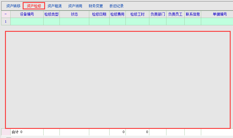 3:资产卡片--分类信息--资产检修不显示检修记录