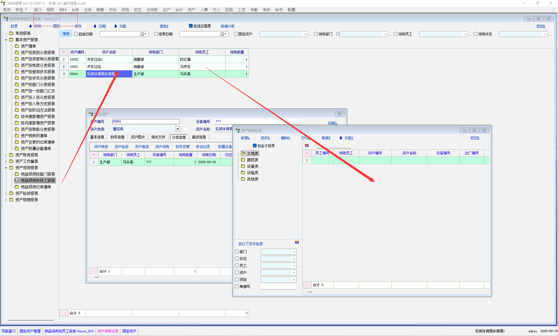 3:物品领用按员工表报双击明细数据跳转异常  asset_016