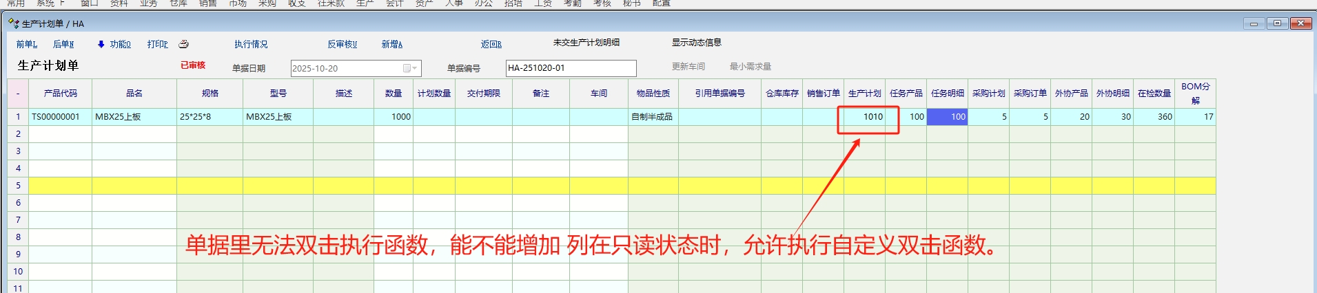 推荐_单据里无法双击执行函数, 能不能增加 列在只读状态时,允许执行自定义双击函数。_产供销
