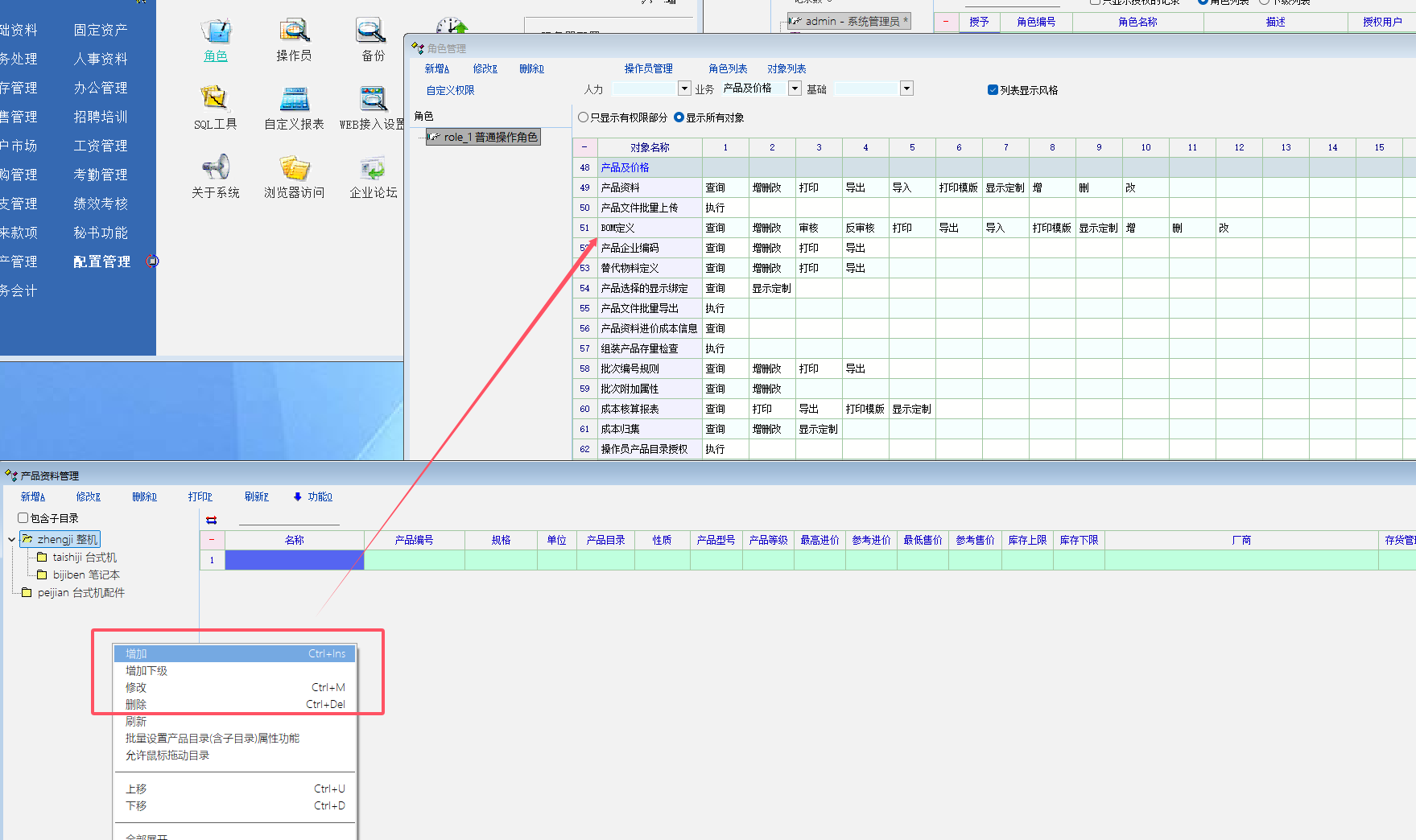 推荐_建议 产品目录的新增, 编辑, 删除, 单独列出权限_产供销