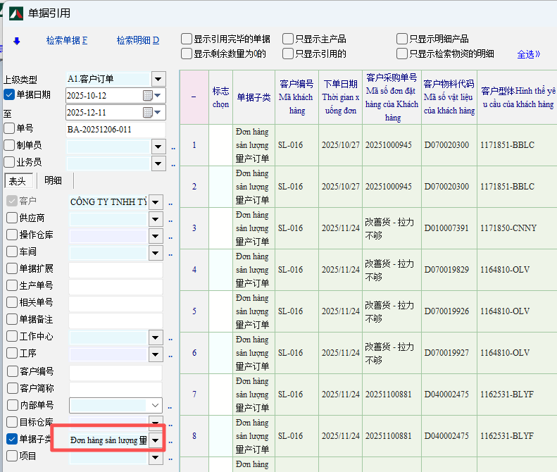 应用场景:下级单据设置了单据子类(量产或样品),在做下级单据的时候点击不同的引用菜单(脚本添加量产应用和样品引用)后自动设置单据子类,但是在引用界面还需要再选择一次单据子类,希望单据引用流程设置能像限制客户或厂商一样增加一个限制单据子类 |