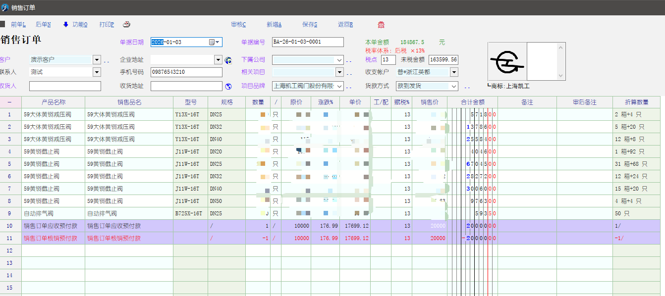 以结算依据销售发货为例。新建2个虚拟产品,1.销售订单应收预付款。2.销售订单核销预付款。审核后,只引用1.创建销售发货立即产生业务。  >收款单(不用预收款),核销。之后可以引用剩余销售订单创建销售发货单产生业务。