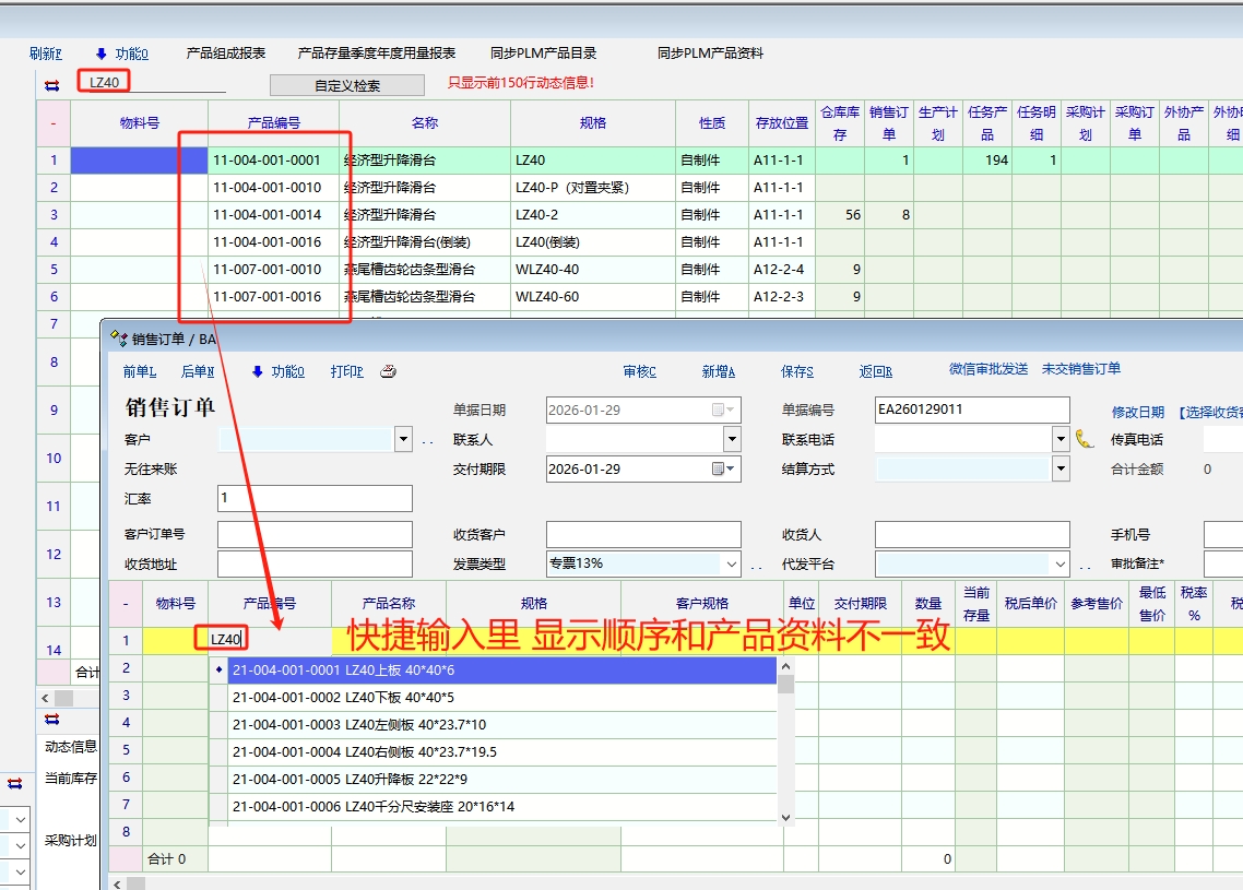讨论_快捷输入里显示顺序和产品资料不一样!_产供销