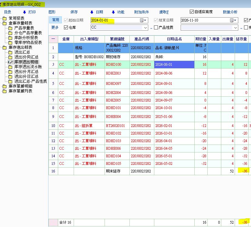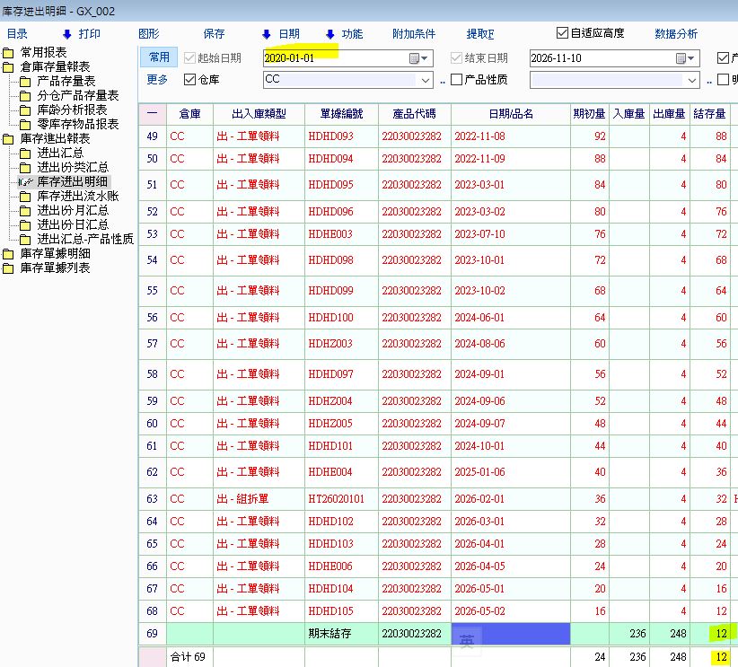 查詢庫存明細時,發現有些產品明細記錄結果會不一樣.