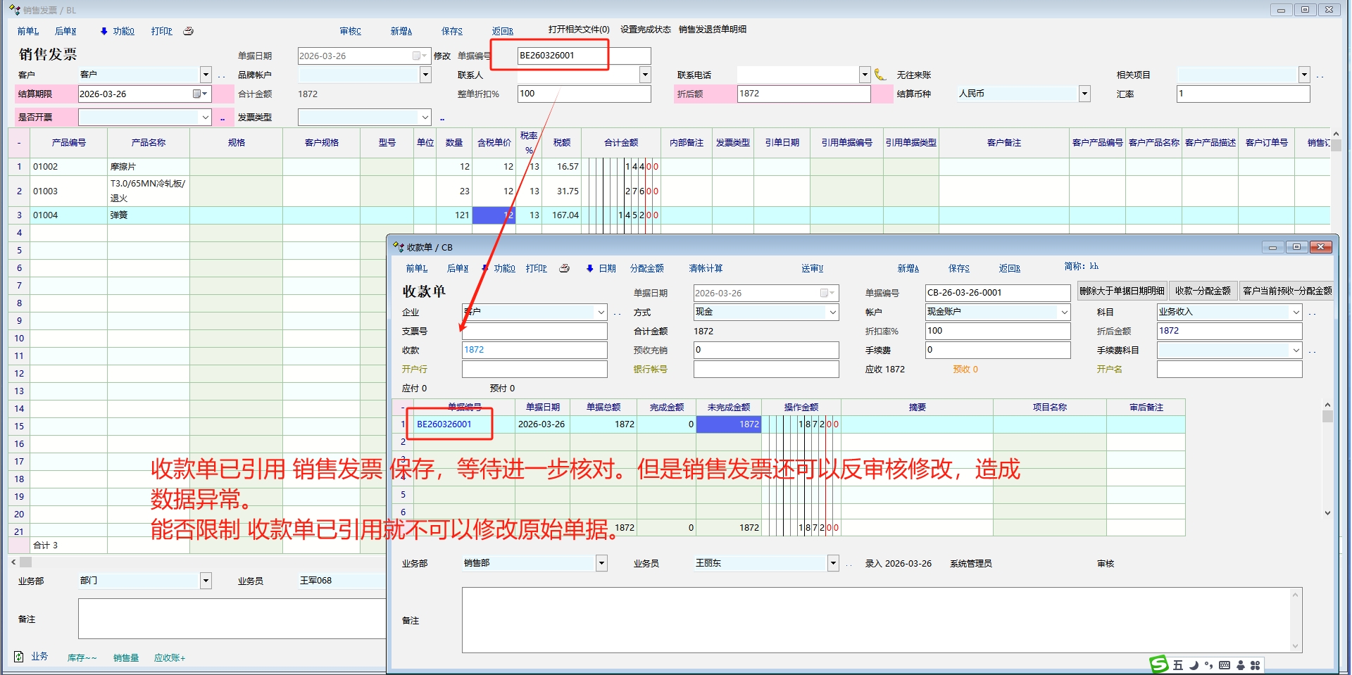 收款单已引用 销售发票,能否限制销售发票不能修改。 |