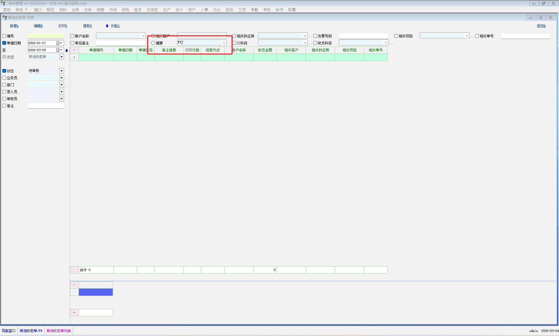 其它收付款列表摘要选取数据后无法自动勾选该条件,不太方便