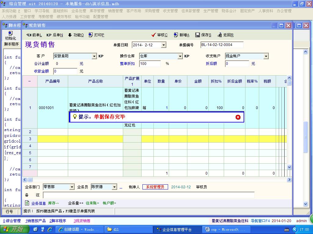 我测试了下把“产品扩展1”启用,然后写上相应的脚本: