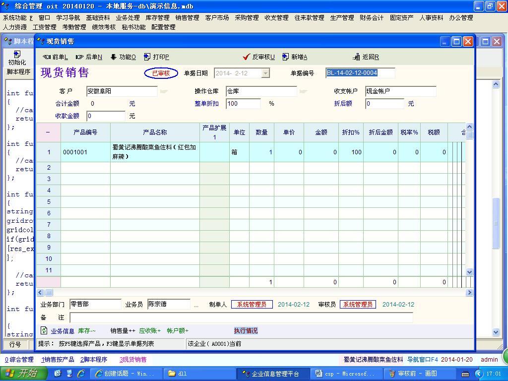 在单据输入过程中可以将数据填入到“产品扩展1”之中,保存后也没有问题,但是在审核后“产品扩展1”中的数据就不再存在了,即使是反审核也不再存在。这个可能算是软件的bug吧。