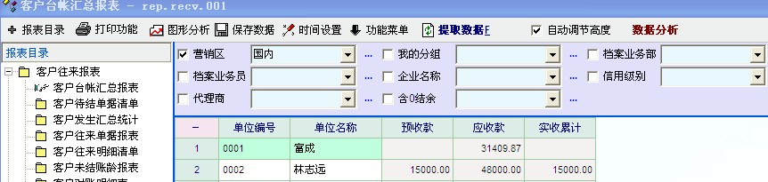 如果我选择当 客户发生业务汇总统计 这项,选择了时间是:4.1--4.30号,但只会显示有发生过业务的客户出来,如:图片1