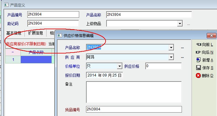 这个是记录供应商报价信息的,产品资料里面的最高进价是以这里面为准,但是有时候好像又没有马上更新到位