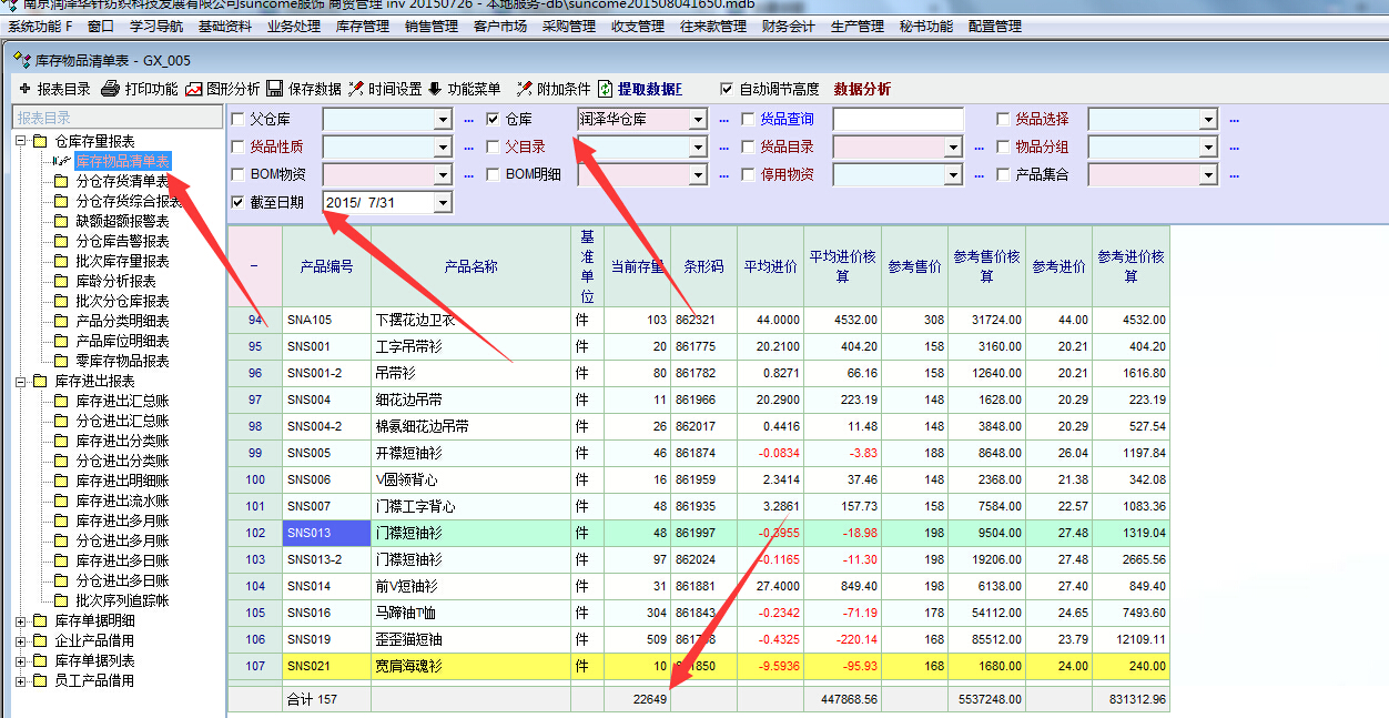 在使用“仓库存量报表---库存物品清单表”查询结果出现异常,不选截至日期查询结果与选截至日期7月30日查询结果一致且正确(与仓库实物一样),选择截止日期7月31日或8月任一天查询结果异常,不正确。