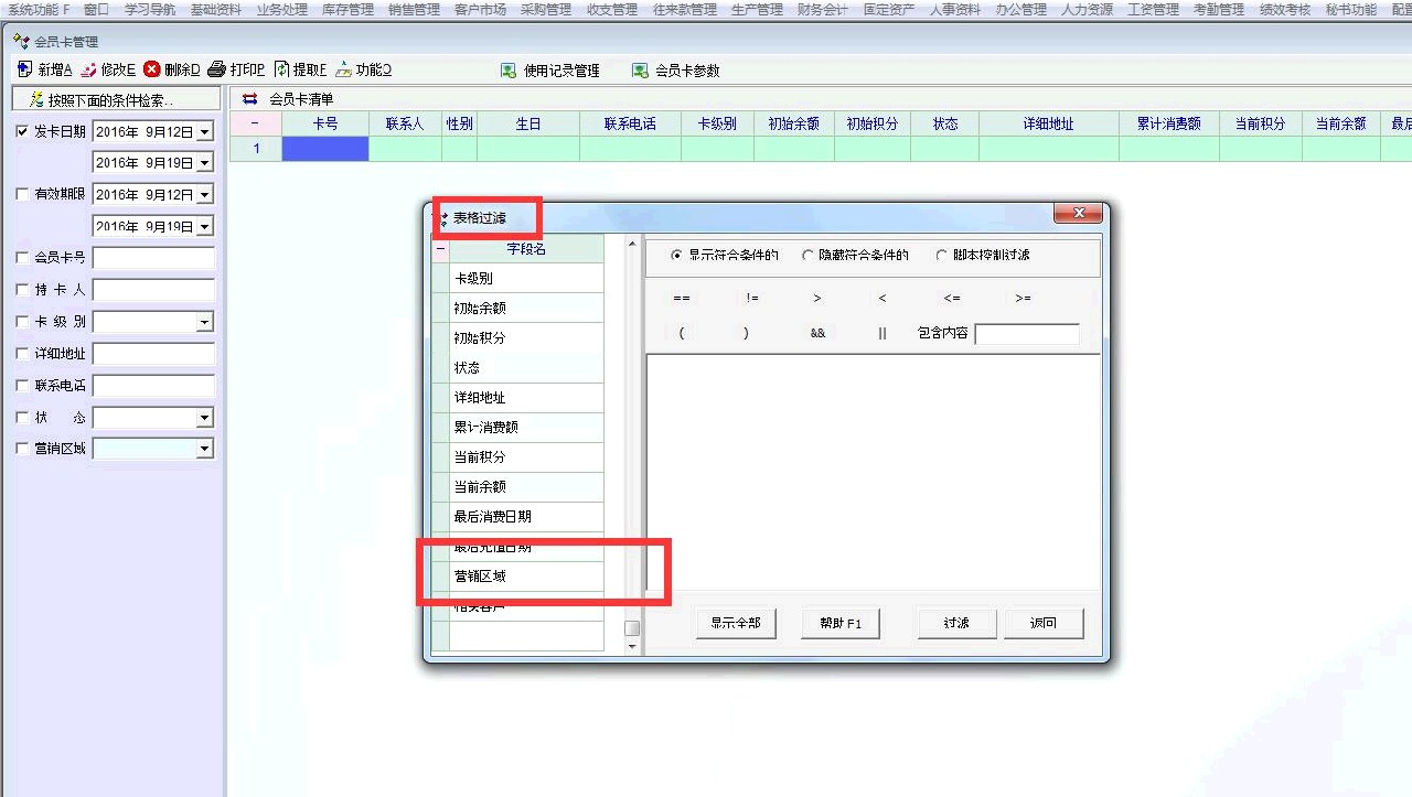 近日,使用会员管理报表功能发现,系统会将所有会员信息都列出来。没有对所属营业区域加以限制,在有选择性的查看会员的时候,很不方便,恳请团队可以增加在检索条件中和显示定义中可以有营业区域这个条件的功能。