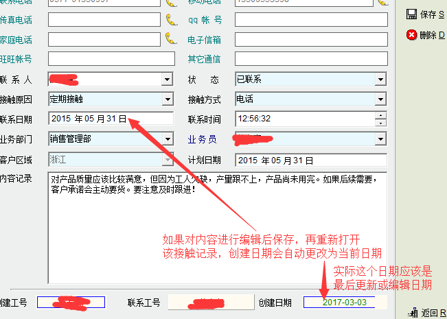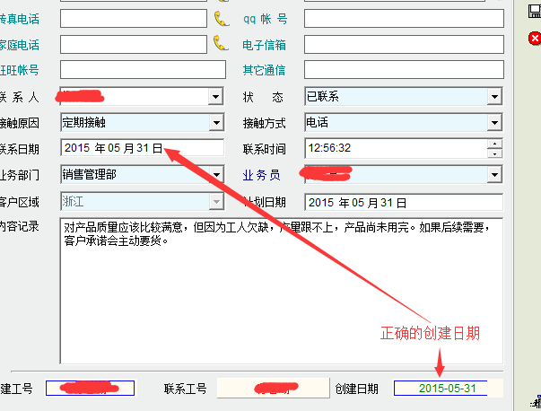 客户接触与客户事件的创建日期不正确,创建日期应该是不可更新的,但在客户接触及客户事件中却不是,具体如图所示。客户接触中的创建日期实际上应该是最后更新日期。