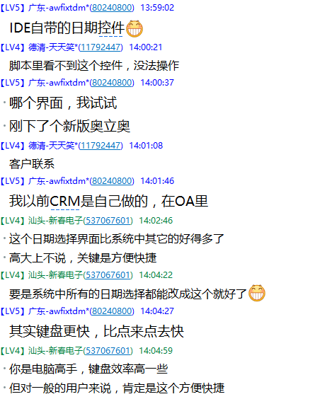 我们跟客户谈的业务或者事情,许多时候根本没法一次完成,有很多的流程要一步一步来,前前后后谈个3、5个来回是非常正常的。如我们一个正常的业务成交,一般要经历以下流程:报价(隔1、2天要跟进),试样(隔4、5天要跟进),小批量试产(隔十来天要跟进),产后回访(隔一段时间)。这些流程,经常还需要反复,每次接触我们都需要记录在案,所以,几乎每次完成一个接触记录后,跟着就要制定下次的接触日期。具体的计划接触日期,都是要根据与客户接触中了解到的实际情况商榷后确定,总之千差万别!虽然现在系统也可以实现想要的功能,甚至有批量“接触计划制定”功能,但实际使用起来效率太低,也非常不够人性化,根本就不适应我们这些非常频繁使用的应用场景。非常期待老师能实现上述功能的优化! |