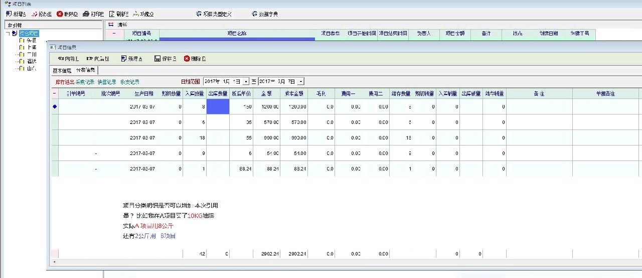比如,我在项目A 采购了10KG油漆。实际A项目只用了8KG。还有2KG 下次B项目引用。这样A项目引用80% (8KG)