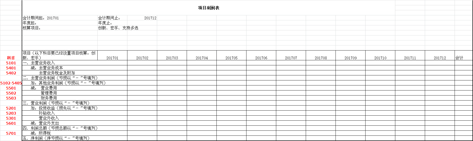 目前的利润表,不涉及项目核算,由于我公司的特殊要求,需要把现在的利润表按项目号做查询,我们现有的核算项目有创新和宏孚,想实现宏孚一张利润表、创新一张利润表,两张表加起来就是总表,可以有偿开发,具体如下图及附件: