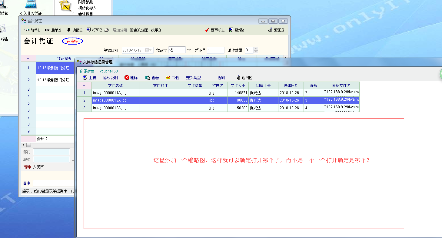 财务凭证-功能-相关文件里,上传照片后,在照片的时候希望添加一个预览功能,这样可以有选择性的查看照片
