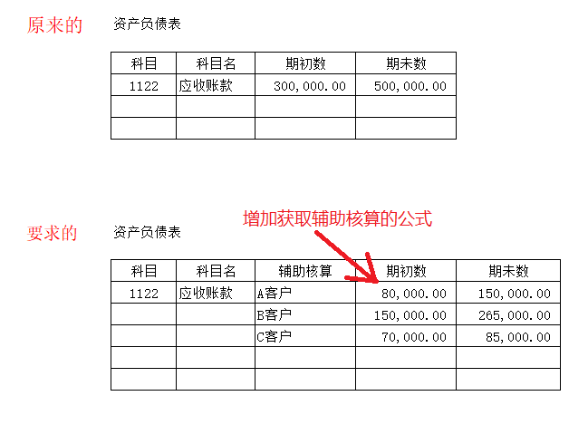 报告里取的是汇总数,直接从目前的公式取就可以了。 截图上还是没有体现出辅助核算的需求来。