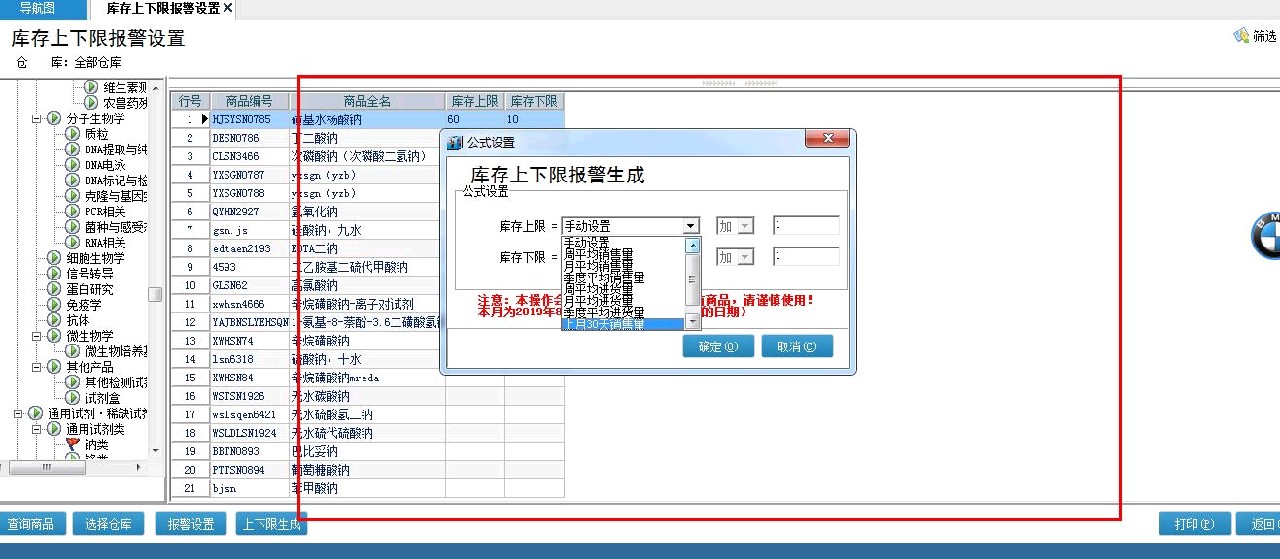 可以参考一下,管家婆的设置。批量设置。而且可以个性化设置,可以按照类别设置,也可以批量设置单个产品的上限和下限。