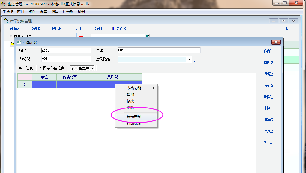 在产品定义---一计价折算单位---右击显示定制---admin登陆添加用户绑定,也一样会出现这个问题!