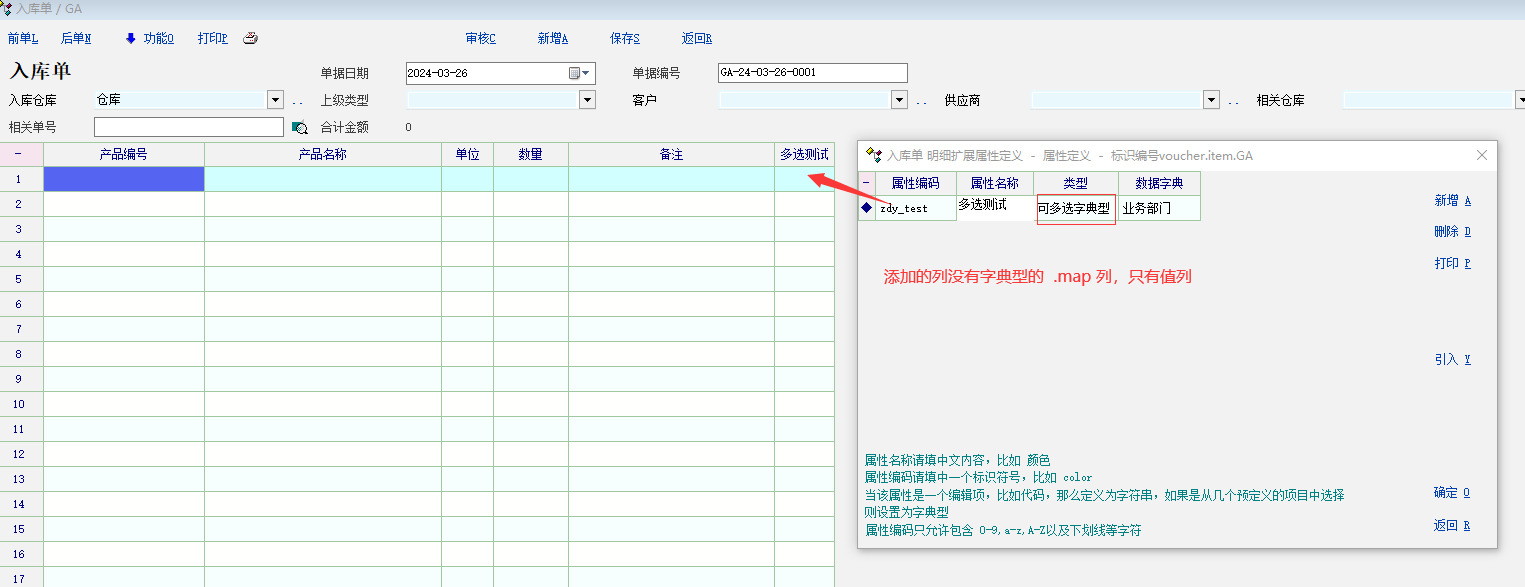 表格附加属性添加 多选字典时的问题如下图所示