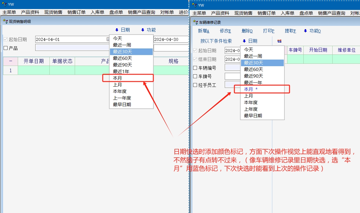 孟老师:日期快选时还要添加颜色标记,方面下次操作视觉上能直观地看得到!