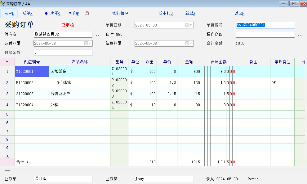 您好,采购单当天建立的。没有影响到里面的采购数据,是空白的