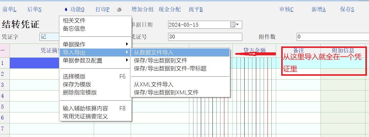 现在的会计凭证导入功能只能一个个凭证的导入,批量导入 的会计凭证全在一个凭证时里,不能按模版里的凭证号分开导入。能否在序时薄界面增加导入功能?