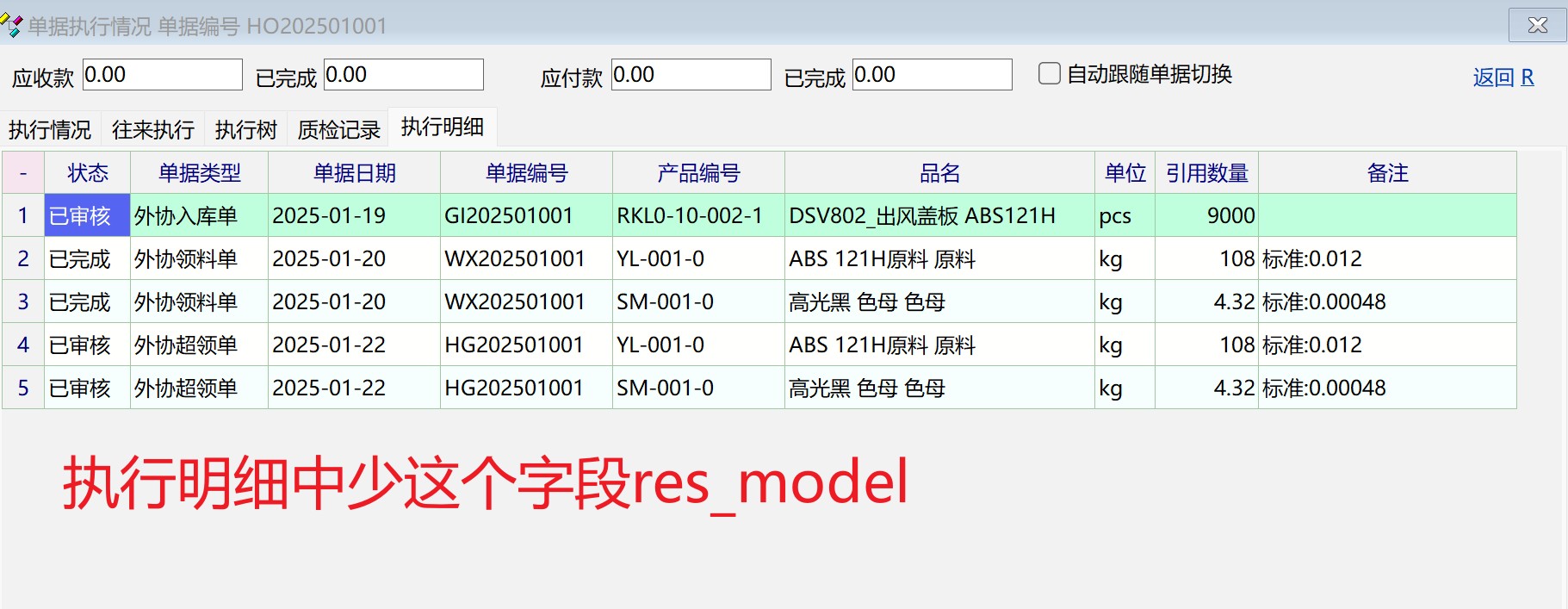讨论_单据执行情况下的执行明细中少型号res_model字段_使用经验