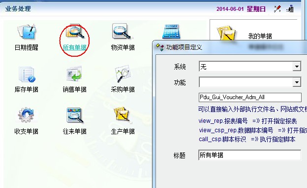 如图,《所有单据》默认是在《业务处理》分组中,我想在《常用单据》中使用,在《常用单据》中增加《所有单据》图标后却没法打开《所有单据》。