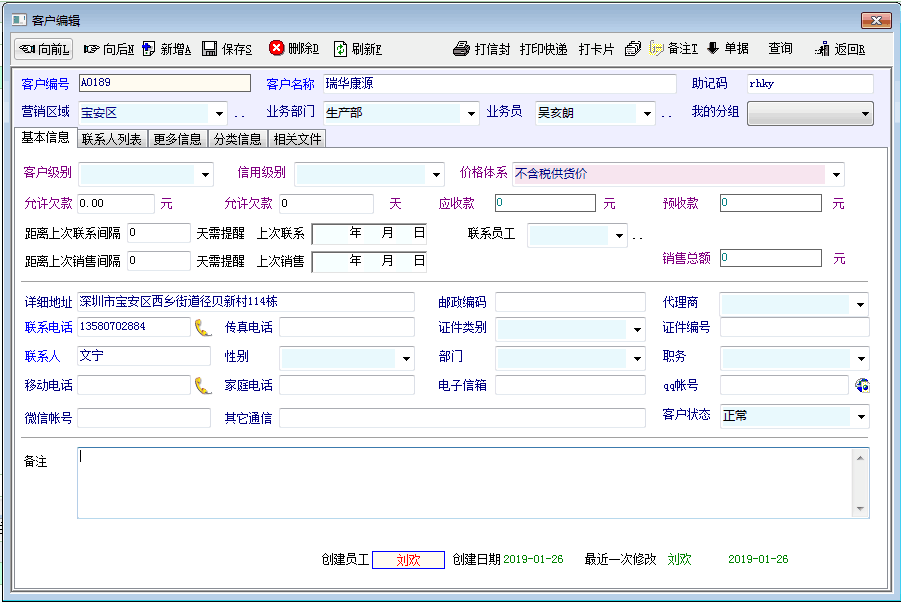 2、在客户资料里面填写每个客户的结算方式。