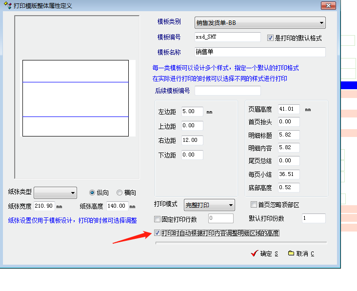 勾选了打印模板里的基本属性但还是有不能自动分行高度的