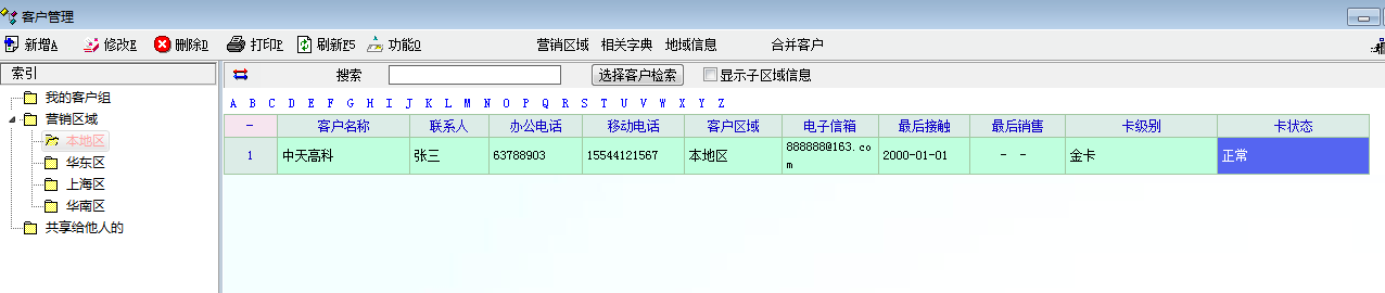 目前客户管理与会员管理是分开的,增加会员卡时可以关联到相关客户,但不能从客户资料里看到是否会员,会员卡状态。但通过系统强大的脚本功能,可以实现以上功能。实现步骤及代码如下: 1、客户管理》功能》记录管理列表脚本定义 2、具体代码: int load_over() { grid_add_col_str('MG','card_grade','卡级别'); grid_set_col_width('MG','card_grade',140); grid_add_col_str('MG','card_state','卡状态'); grid_set_col_width('MG','card_state',140); int id,r_num; string mobile; r_num = grid_row_num('MG'); //msg(r_num); for(id=1;id <= r_num;id++) { mobile=grid_get_v('MG','mobile_no',id); if(mobile=='') continue; //msg(mobile); db_run("select mem_card_grade,state from eba_mem_card where card_no='"+mobile+"'"); //msg(db_row_count()); if(db_row_count()>0) { grid_set_v('MG','card_grade',id,db_res(0)); grid_set_v('MG','card_state',id,db_res(1)); }; }; return 1; }; 注意事项:增加会员卡,会员卡号必须是客户资料主联系人的手机号。 实现效果如: |
