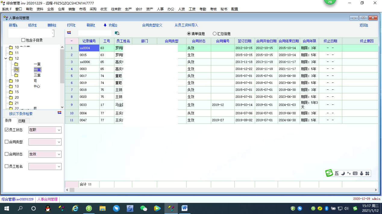 人事合同中,一般一个人会多次和单位签定劳动合同,能否也可以向证件管理中的一样显示“合同到期剩余天数”?以便于一眼秒可以看到谁的合同到期了,便于续签或解除劳动合同
