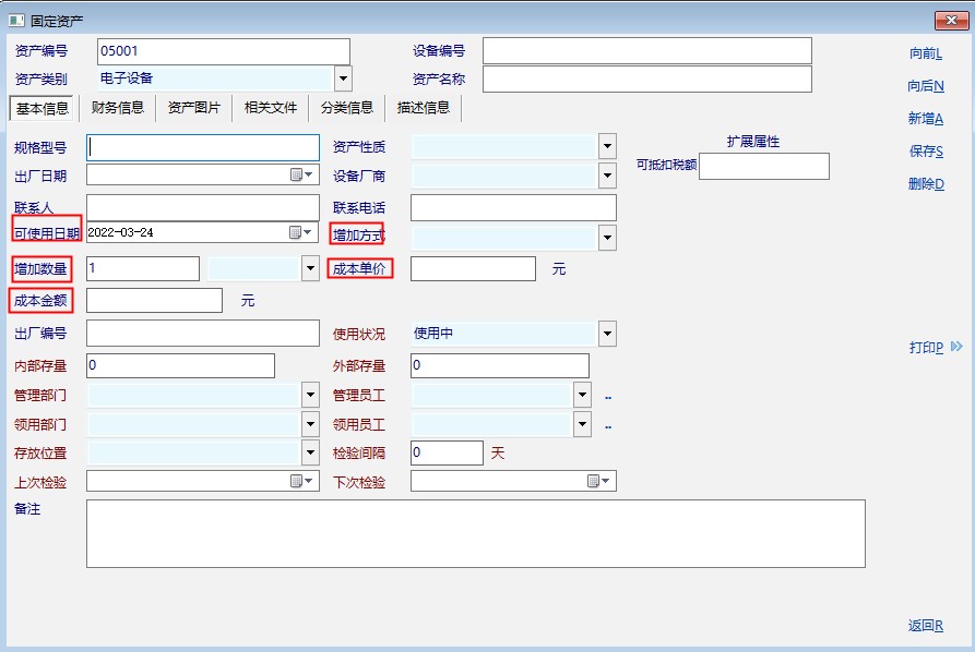 新增固定资产卡片时,系统默认卡片的基本信息中,多个标签都是以购置为假设的。固定资产增加有多种方式,比如购入、自建、融资租入、接受投资和捐赠、盘盈等,但是系统默认的标签是“购置日期”、“购置方式”、“购置数量”、“购置单价”、“购置金额”,为了相对准确地表达这些标签的含义,建议将这些标签修改为“可用日期”(所有固定资产只要达到预定可使用状态即可确认,并非一定是购置日期或者使用日期)、“增加方式”、“增加数量”、“成本单价”(固定资产初始入账价值是以成本计量的,即使是购置的固定资产,可能后续还会经过安装、调试等过程才能达到预定可使用状态,固定资产的入账价值是包含了相关费用的)、“成本金额”,个人认为这样更准确一些。同时,相关报表的对应项目也要做同步修改。