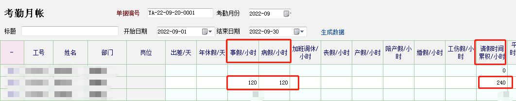 按照实际天数小时和分钟数核实填写请假单,统计月帐的时候据此合计。