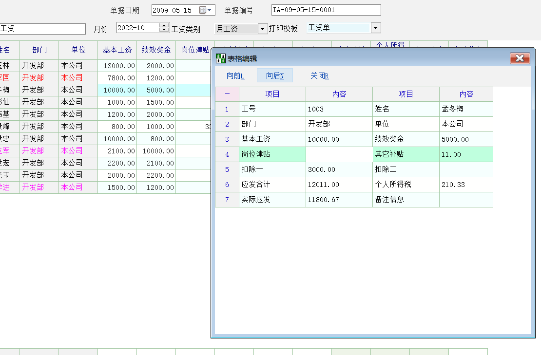 因为公司的工资科目比较多,在检查某行工资,或者修改某个科目工资时,需要来回拉动表格,不方便。希望有个工资卡片,能一眼看到所有明细,支持修改并反写到表中。
