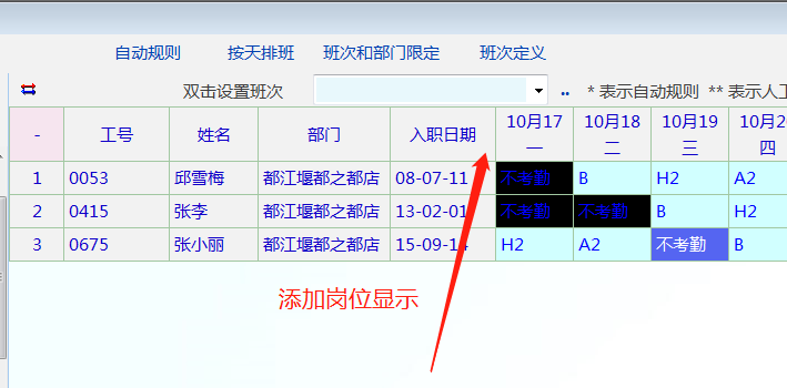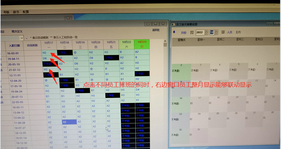 员工排班里面----岗位显示需求以及联动显示问题:在员工排班里面希望能够把岗位也显示出来,以便一目了然明白什么岗位是什么班次。在员工排班界面显示员工整月排班后,点击不同的员工,希望整月显示也能够联动显示。