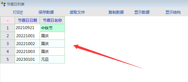 这跟常德老师为我设置的节假日和周末判断相似,解决方案是新建一个法定节假日【fdjjr】的字典,用假节日作为字典编码例如20230101作为2023年元旦的字典编码 string lmt_sql,is_holidays; lmt_sql = "select case when '" + fmt_time(get_serv_date(),"yyyymmdd") + "' in (select case when len(code) = 4 then '" lmt_sql = lmt_sql + get_cur_year() + "' + code else code end from app_dict_def where dict_id = 'fdjjr') then '1' when DATEPART(WEEKDAY,'" lmt_sql = lmt_sql + fmt_time(get_serv_date(),"yyyymmdd") + "') = 1 then '2' else '0' end" db_run(lmt_sql); is_holidays = db_res(0) |