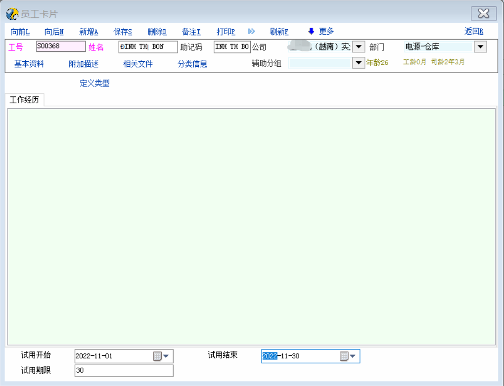 系统员工卡片资料明明有试用的字段 怎么还用附加属性?