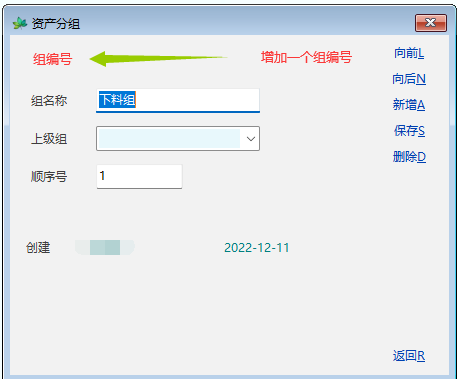 库表是有资产分组编号的,只是在资产分组编辑界面没有显示,是系统自动生成的六位数编码