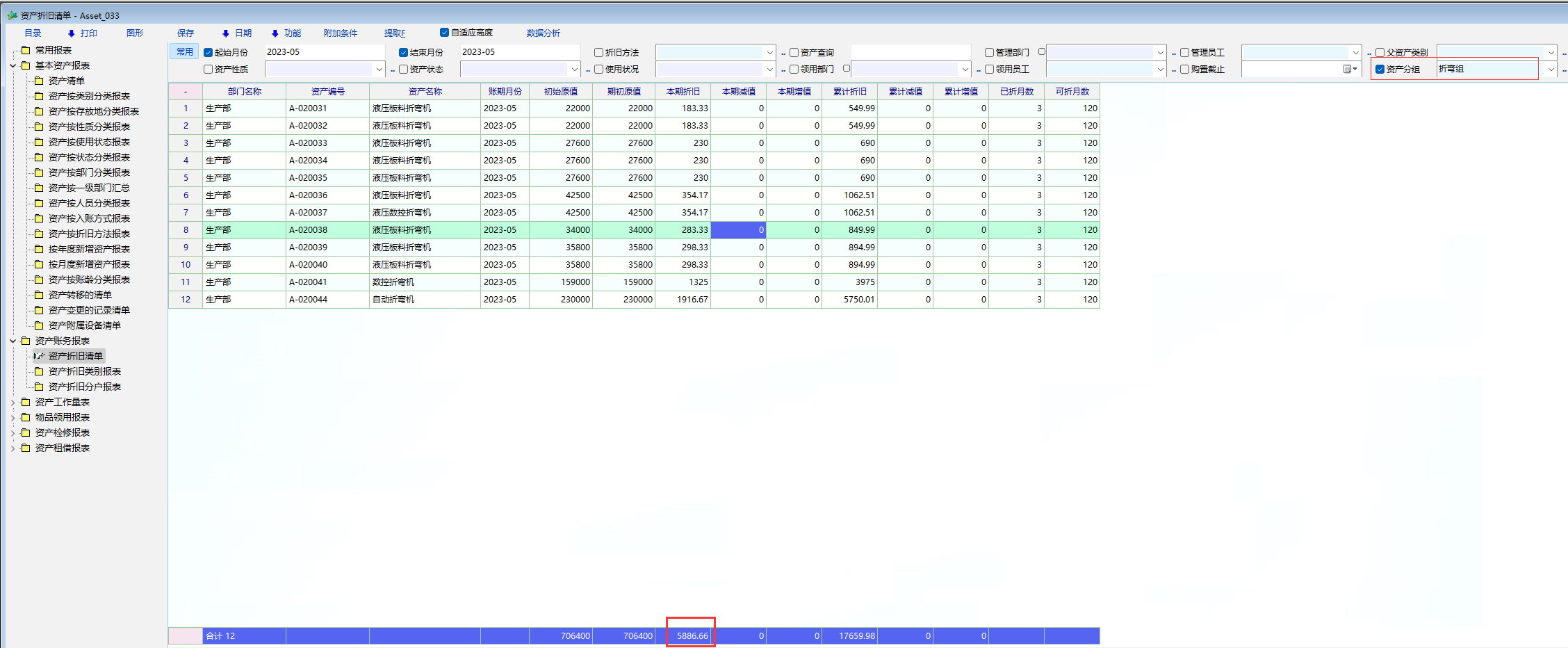 分组取折旧额
