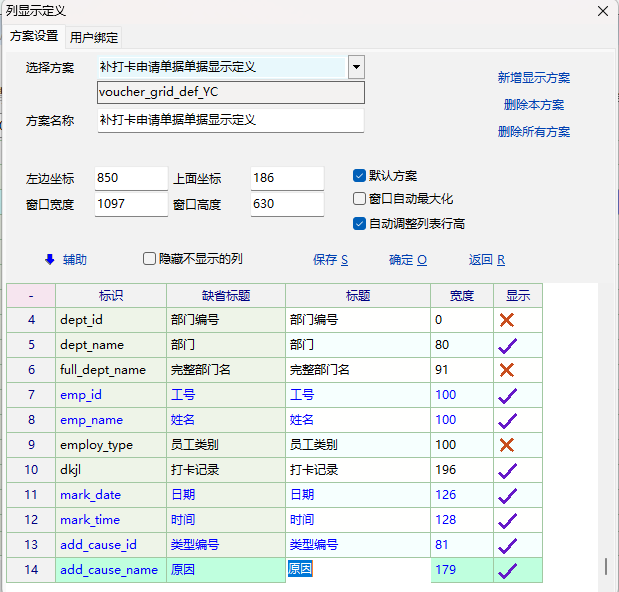那样可能还需要写好多脚本,如果能够增加自定义列,则可以直接把考勤记录的值赋到该列,这样就方便许多。