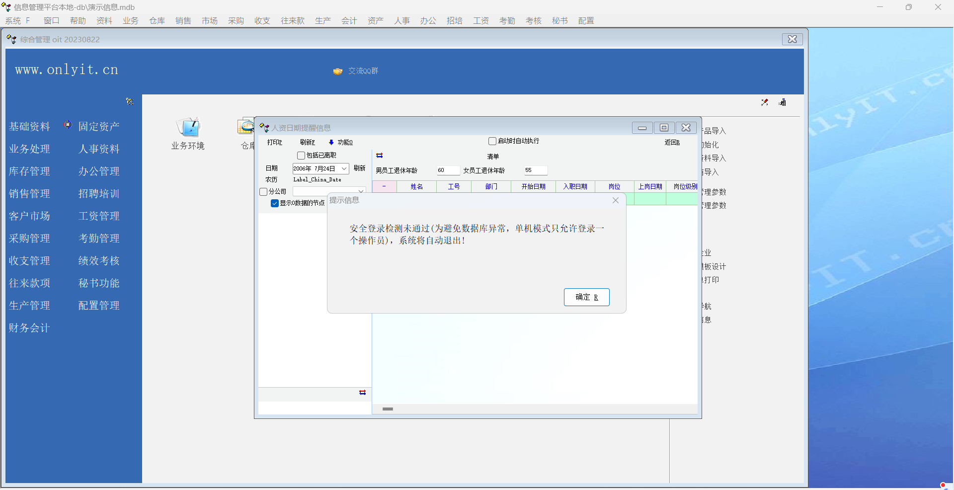 推荐_安全登录检测未通过(为避免数据库异常,单机模式只允许登录一个操作员),系统将自动退_人力资产