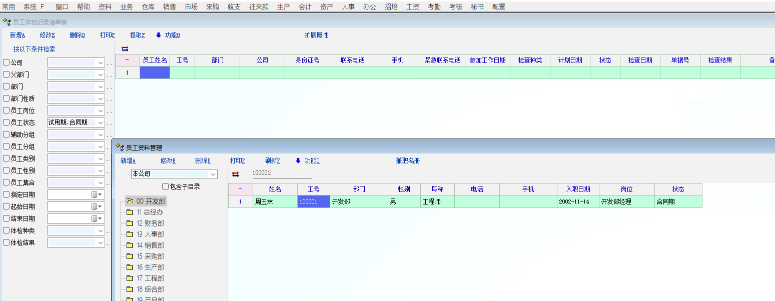 职员修改工号后体检数据不同步,修改工号后查询不到未修改工号前的数据,希望老师测试下,谢谢