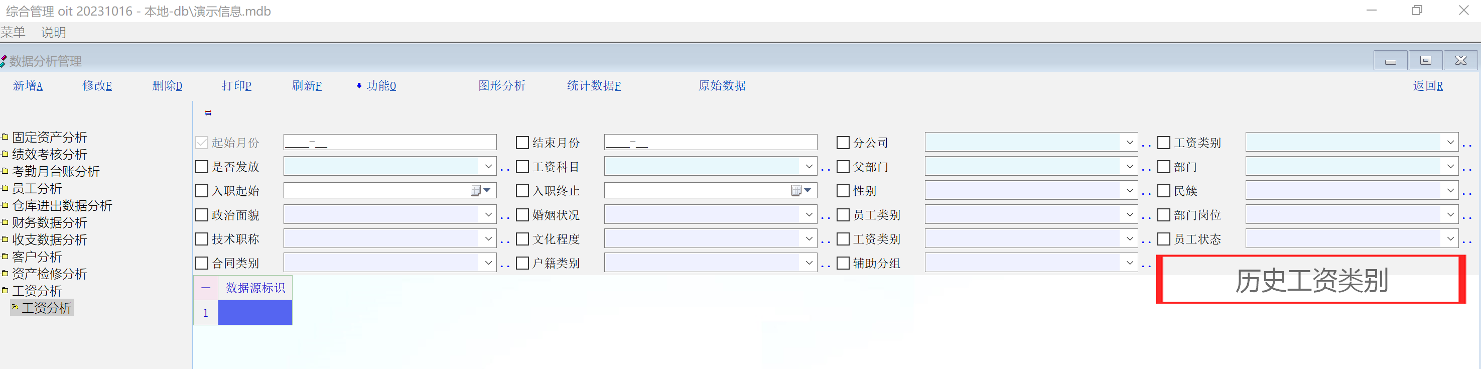 存在问题:因目前系统中员工资料的变化 历史工资单中的相应字段信息会同步变化。目前进行工资数据分析时 因员工工资类别变化导致后续的统计数据变化,与历史工资表数据不一致!