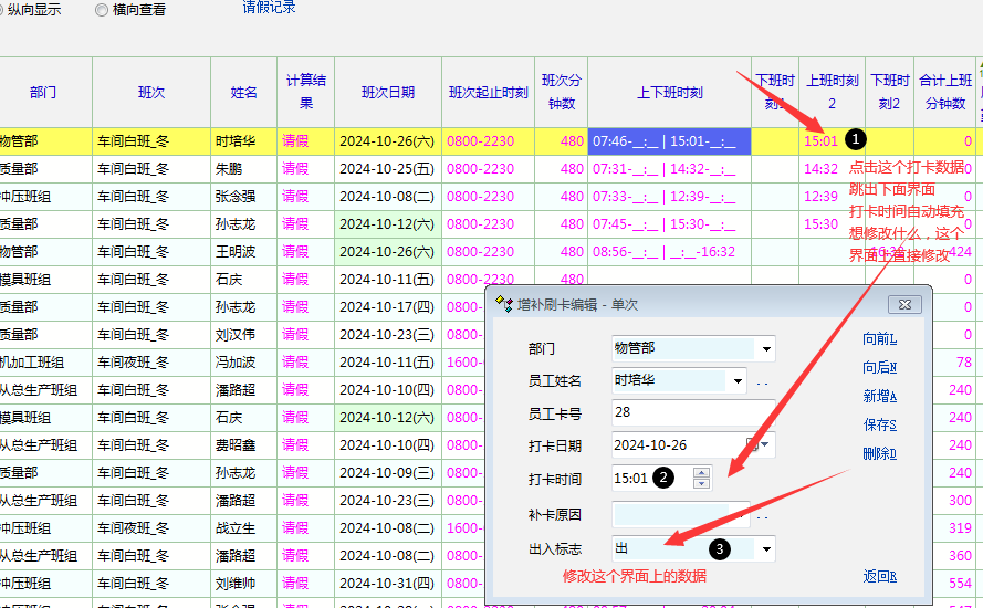 原创_考勤日帐里面添加修改考勤打卡数据快捷方式_人力资产