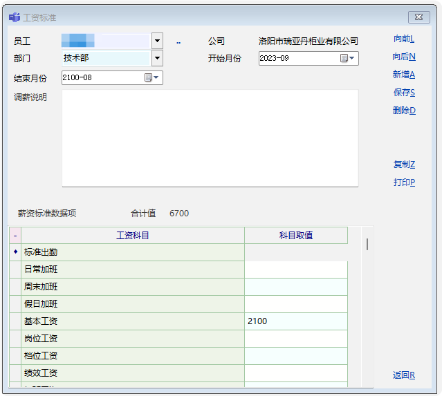 不同的部门,工资标准不一样,就是一样的,也需要去新增新的部门的工资标准,而不是沿用旧部门的标准,如果工资标准里面自动修改原来的部门,那么如果两个部门工资标准不一样,那不是数据都错乱了?