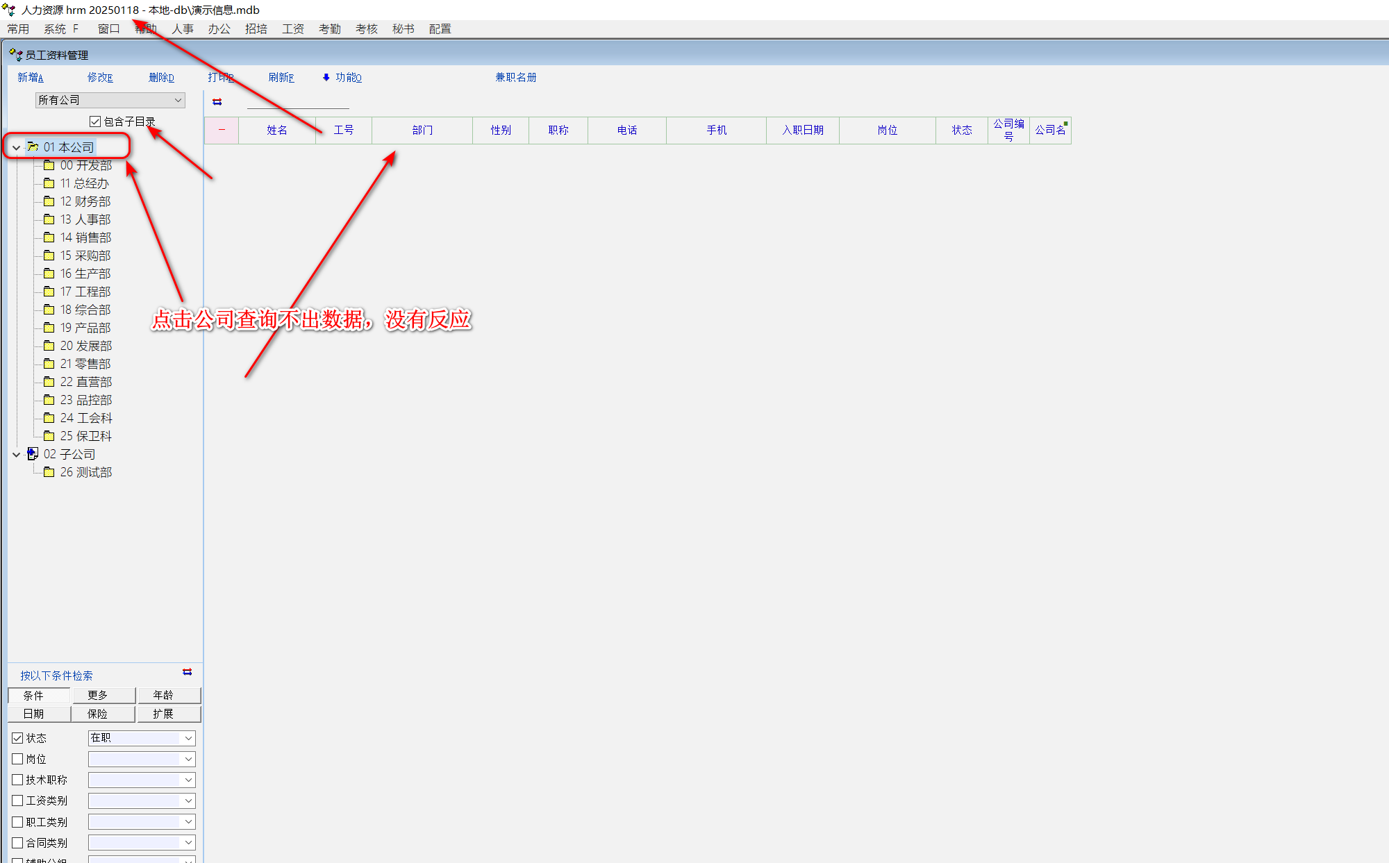 以前的版本,如果有多个公司,勾选“包含子目录”,然后点击公司名称,就可以显示此公司下所有名单,现在试了250118的版本,发现此功能失效了。点公司名没有反应。望修复。谢谢!